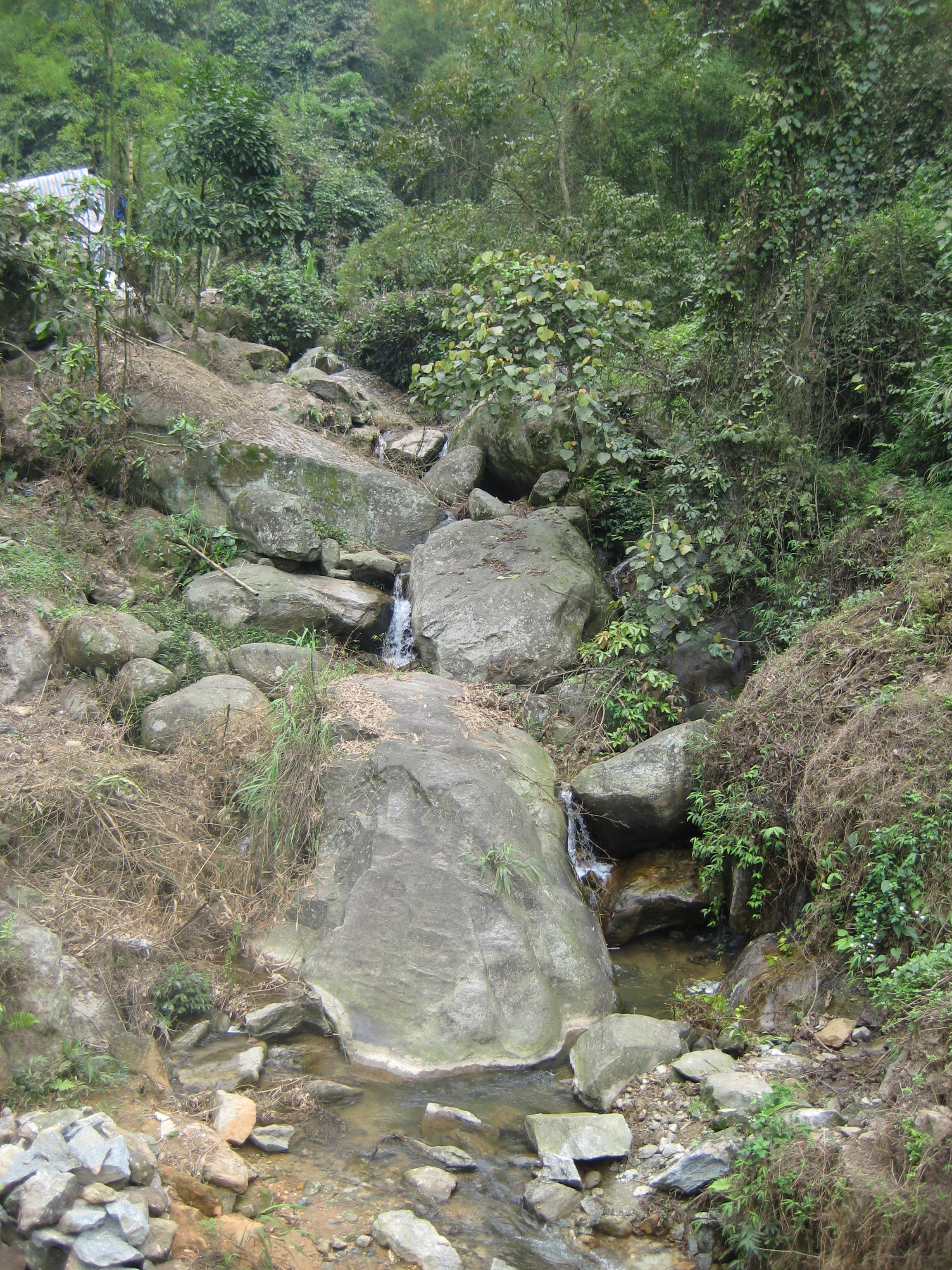 Пару слов о погоде. Во Вьетнаме есть сезоны дождей, но зависят они от региона, как и погода в целом. На севере, где мы были, если не ошибаюсь, хуже летом и зимой, лучше весной и осенью. Суше всего осенью. В любом случае почти всегда жарко (днём 20 и выше, если не очень высоко в горах), плюс очень влажно и душно. С гор течёт вода, её используют для полива грузовиков, которые, как ни странно, во Вьетнаме есть - не всё возят на мотобайках. Хотя могут всё - в этом вы убедитесь позже.