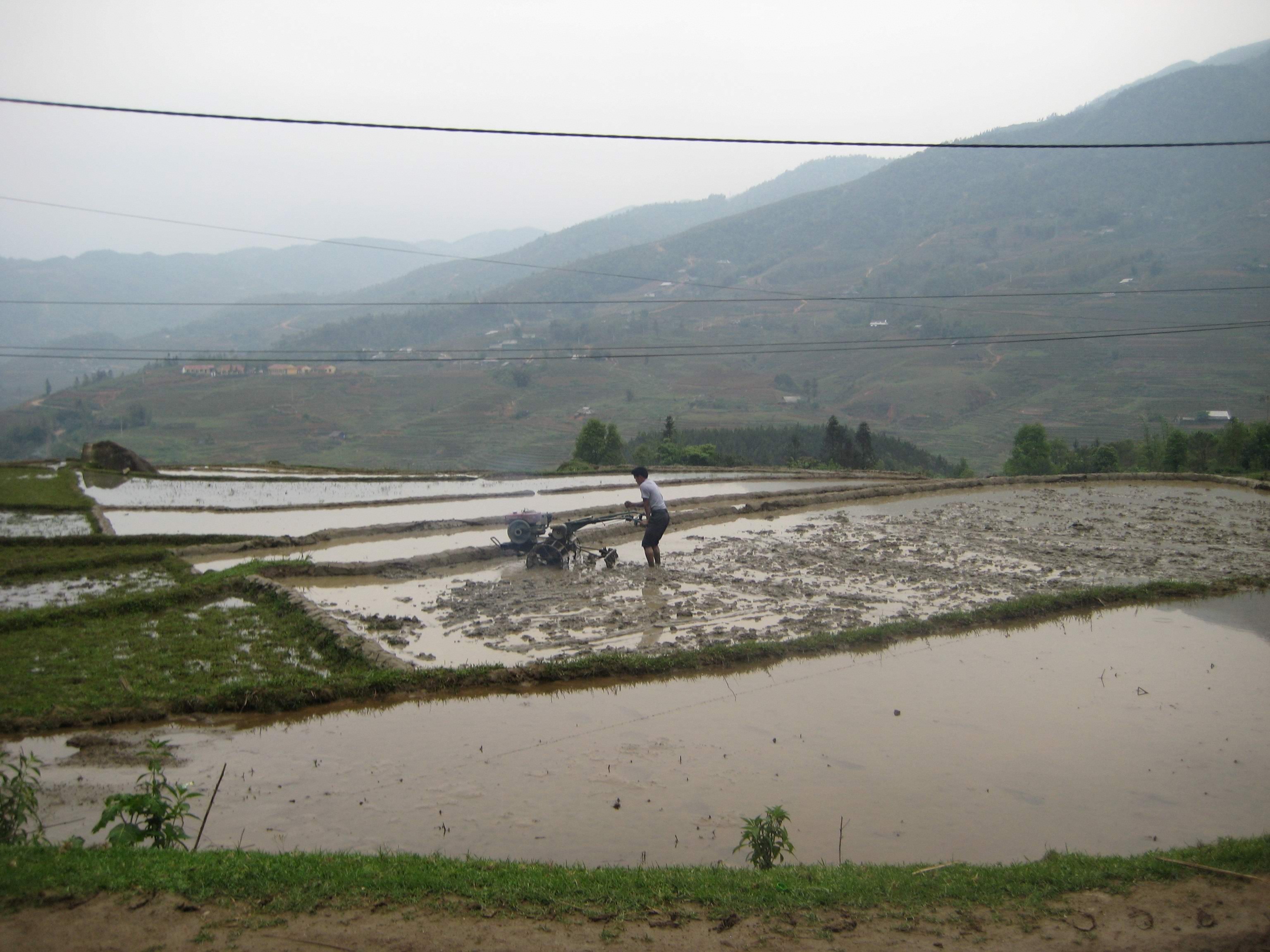 Рис требует очень много работы, и жители горных районов снимают часто только один урожай в год, что приводит к нехватке продовольствия. Трудолюбие вьетнамцев велико - обычной вручную культивируют рис тяпкой с утра до вечера, здесь же редкий случай механизации.