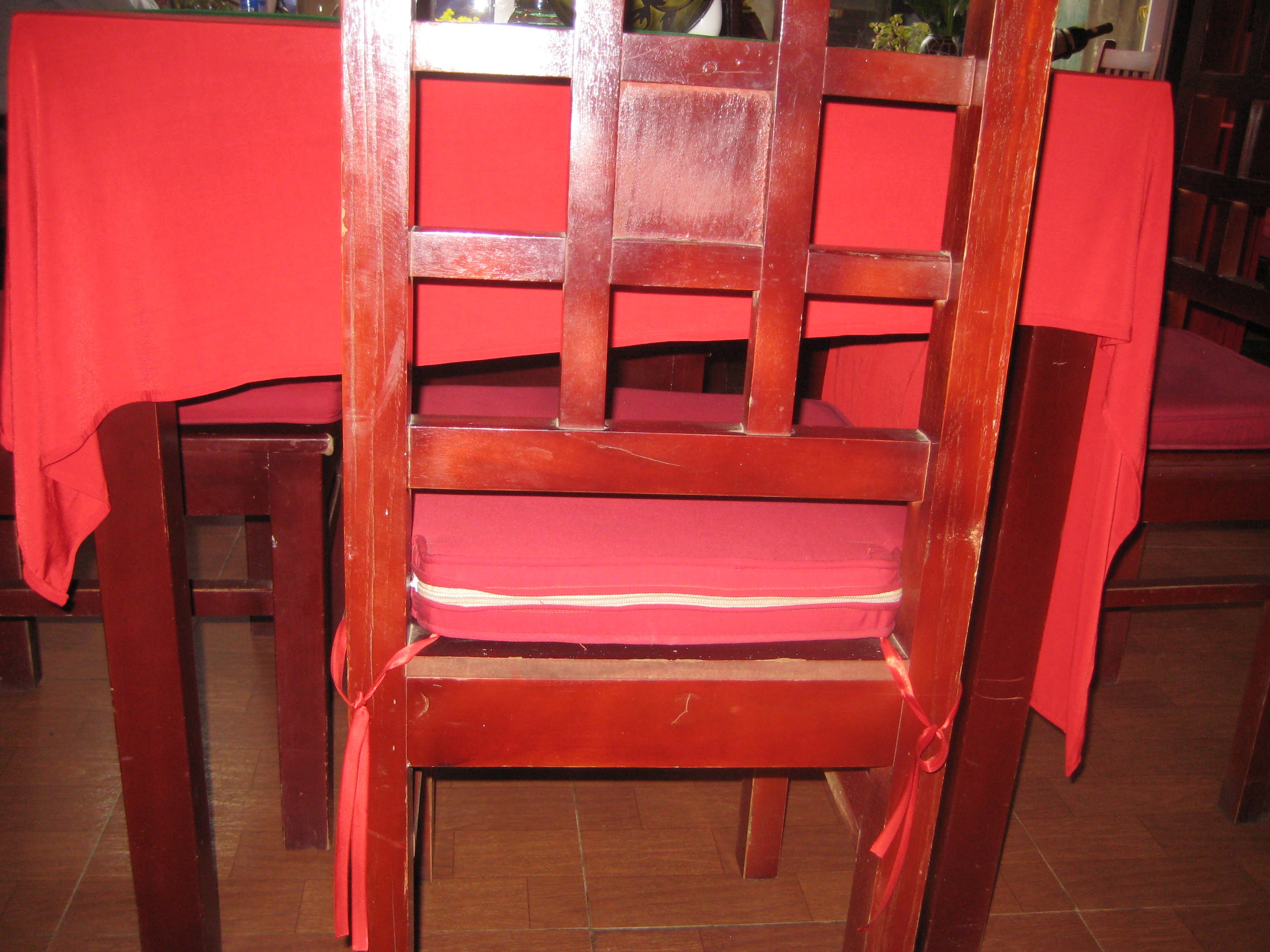 На стульях - подушки, причём привязанные
