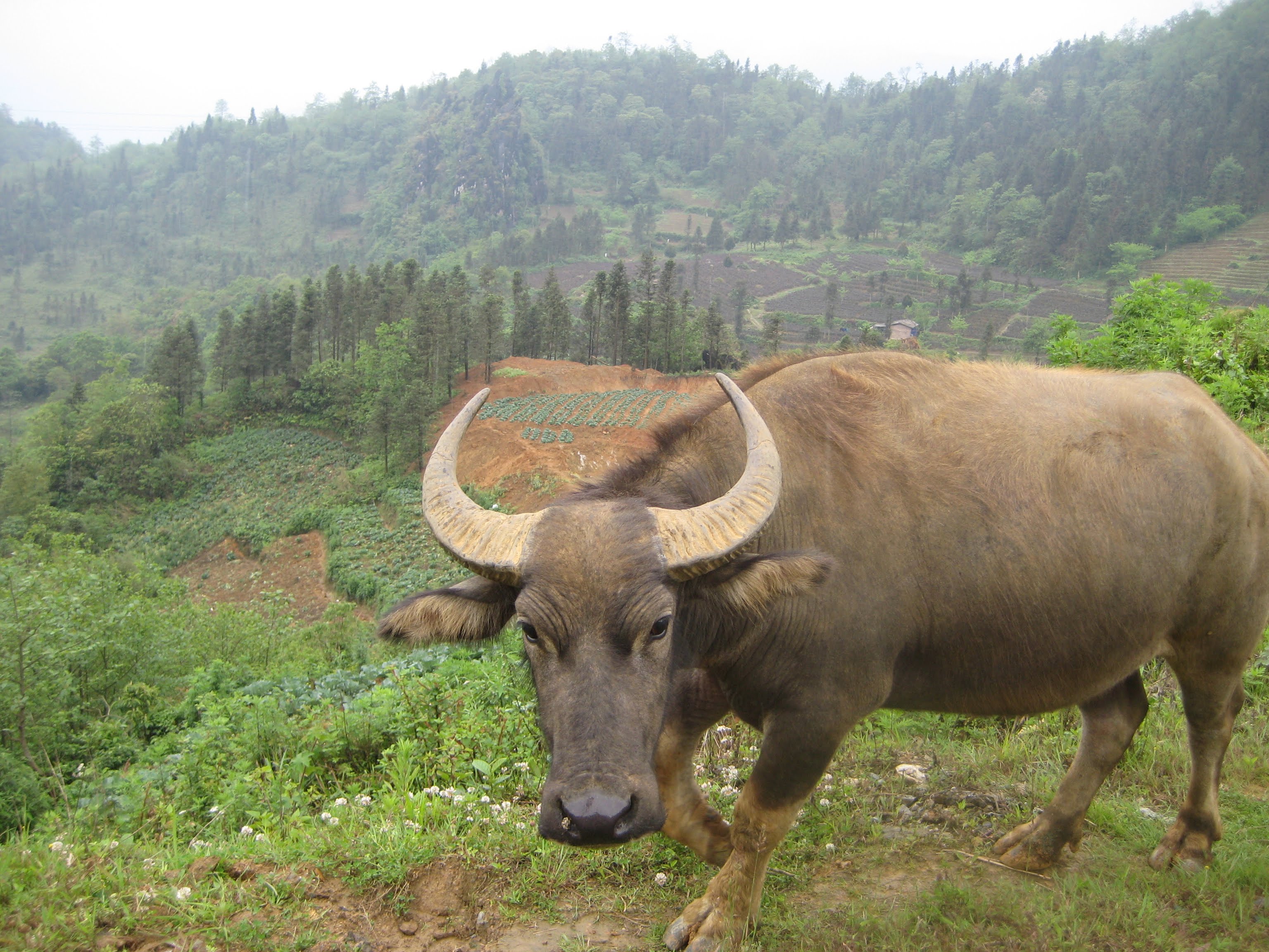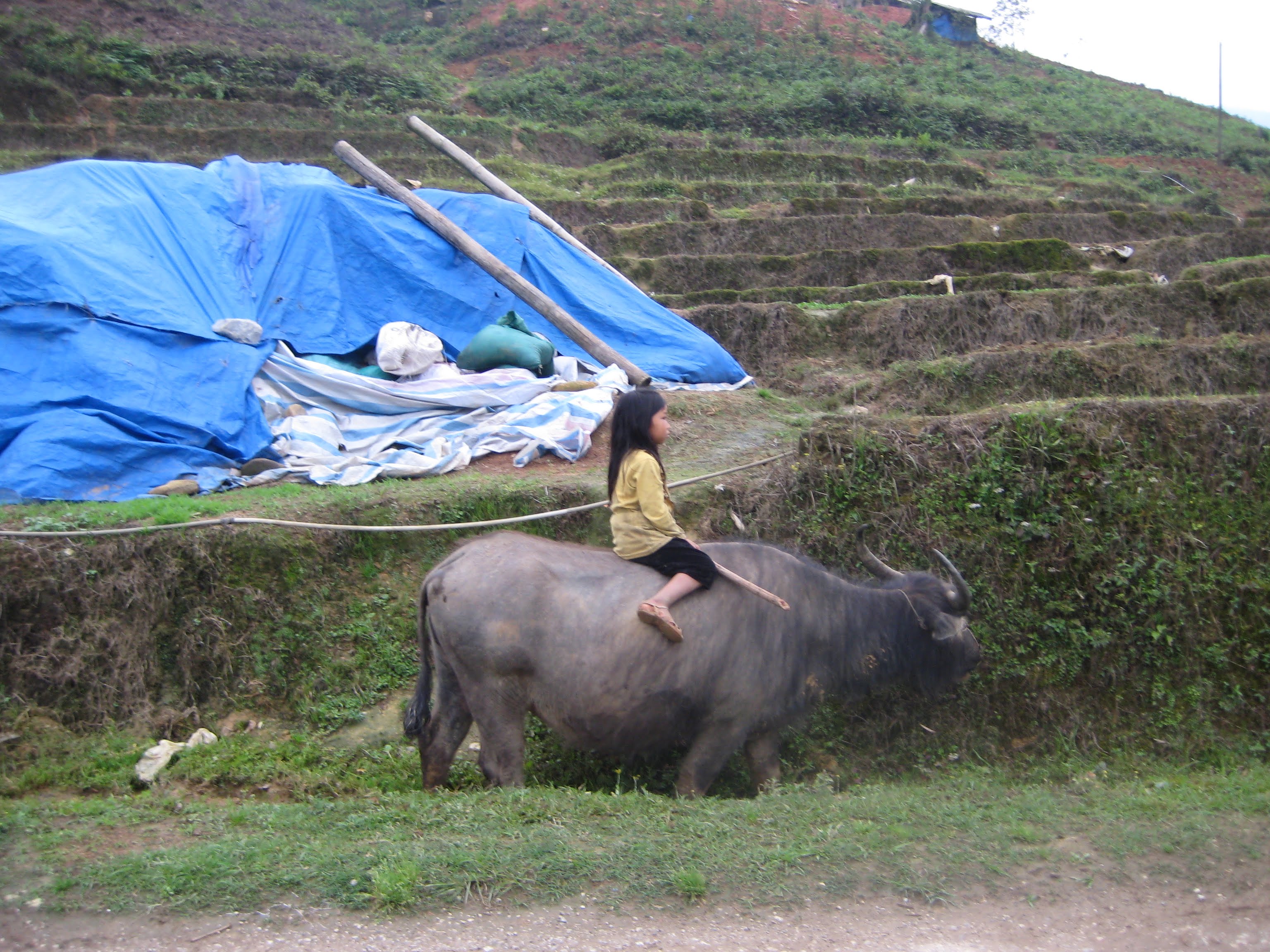 Через пару минут корова пошла по террасе наверх, и стала топтать посевы. Взрослые сразу засуетились и побежали к животине, которую девочка тщетно пыталась усмирить.