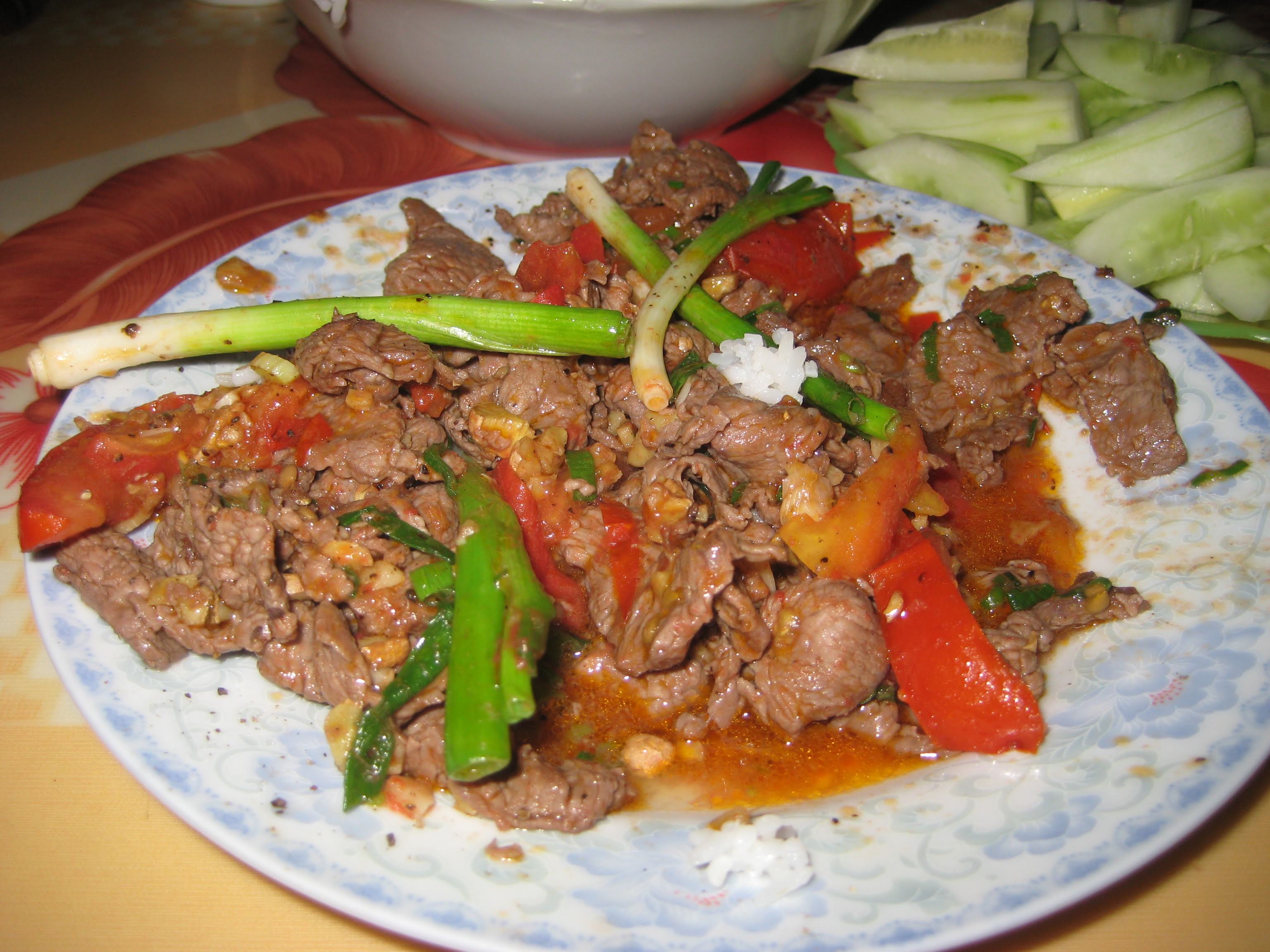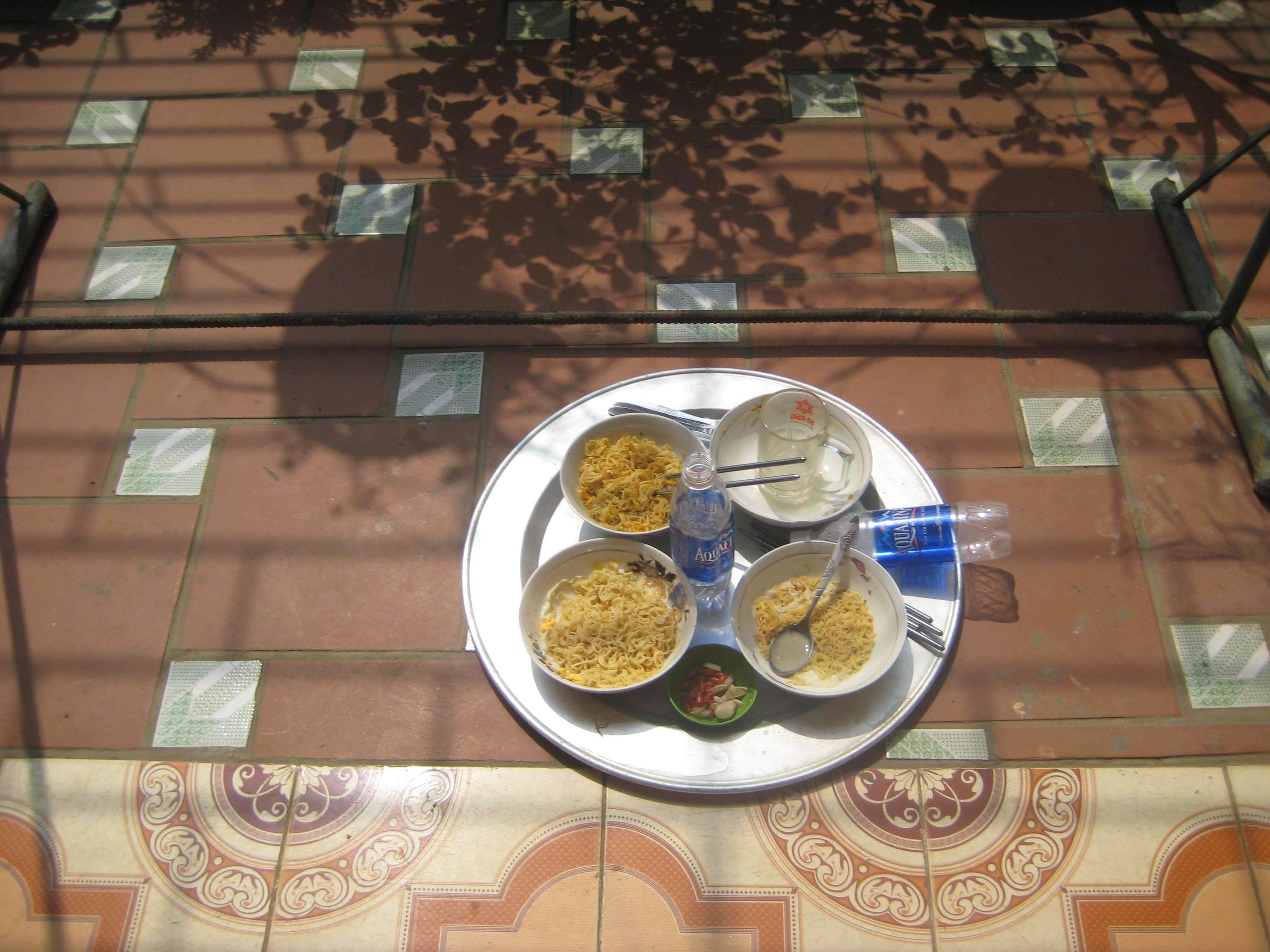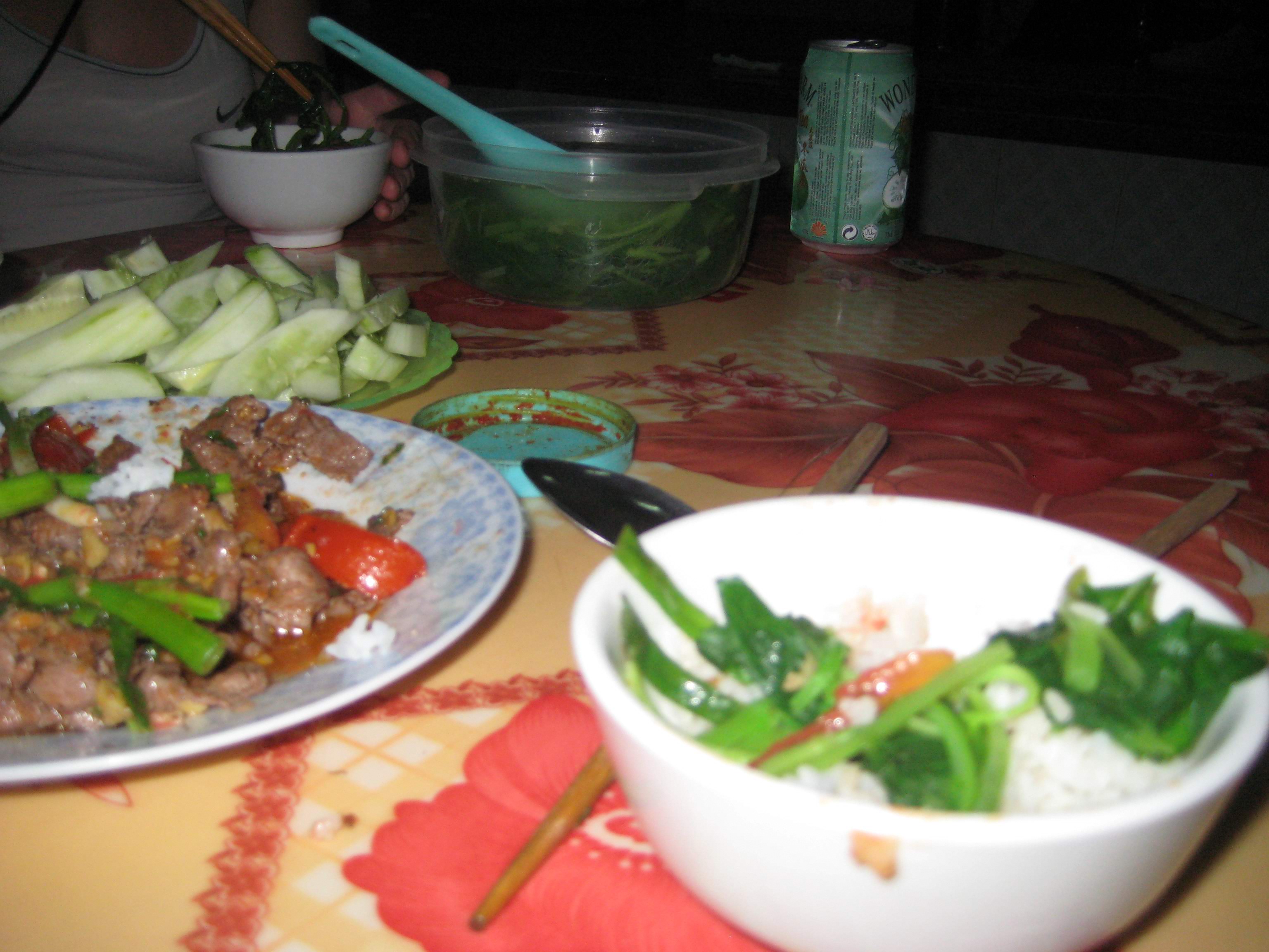 Поесть от пуза, как обычно, стоит что-то около 3-4 долларов на человека. Английского меню нет, поэтому приходится тыкать пальцем на чужие столы. Стесняться не надо, всем пофиг, главное улыбайтесь побольше и изображайте на лице сложность понимания.