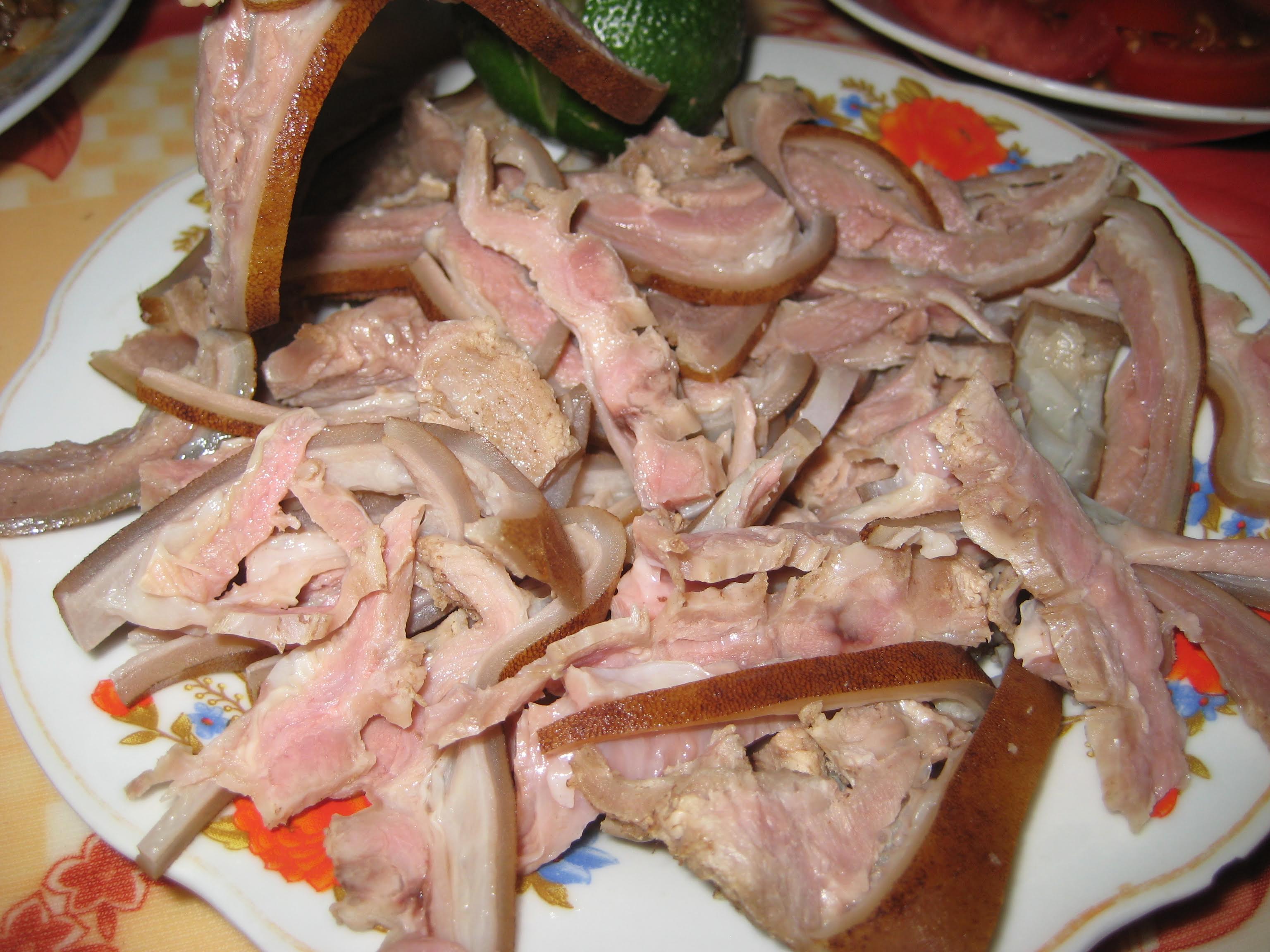 В каком-то смысле экзотика - свиные шкурки, от ушей, наверное