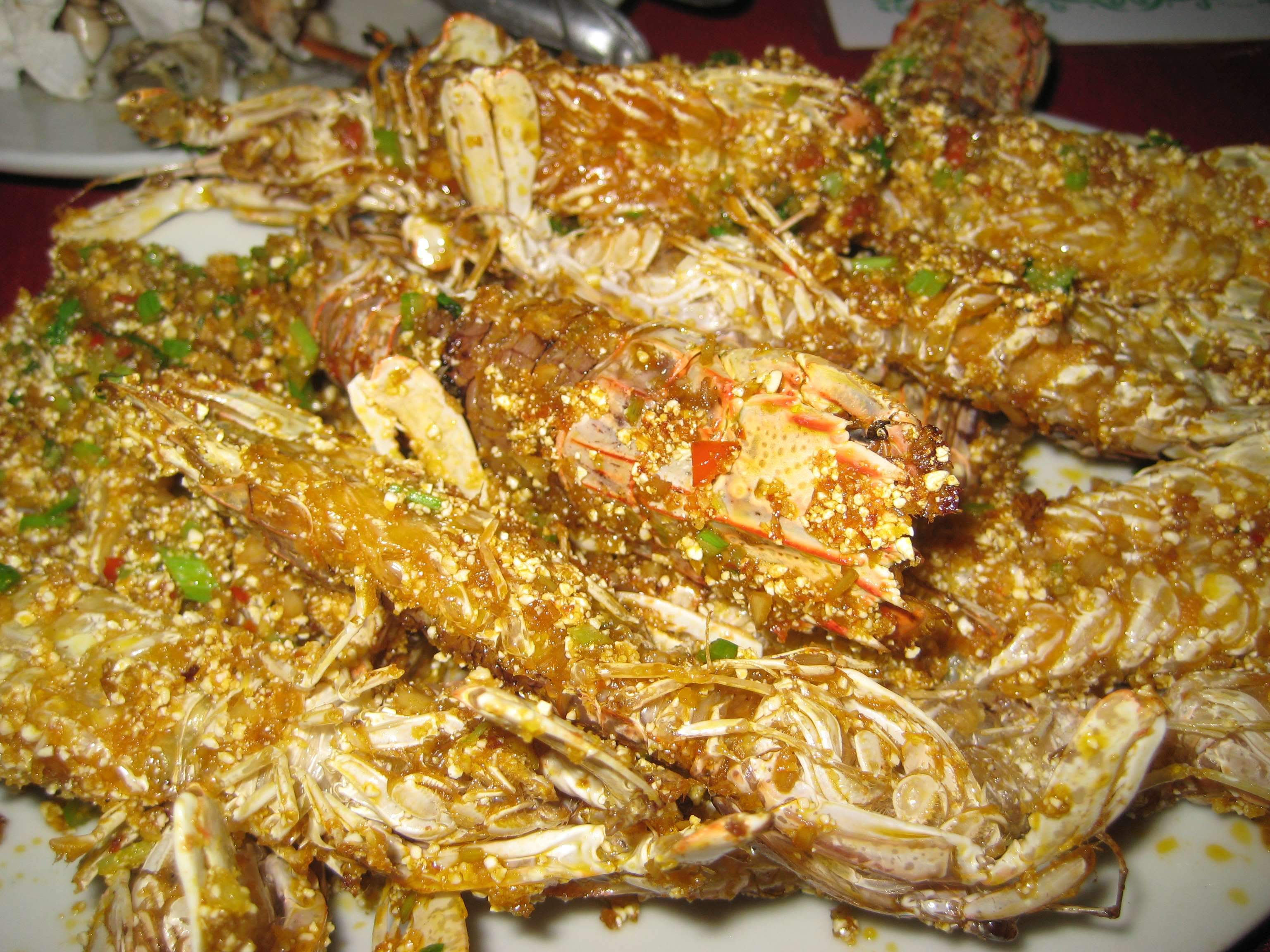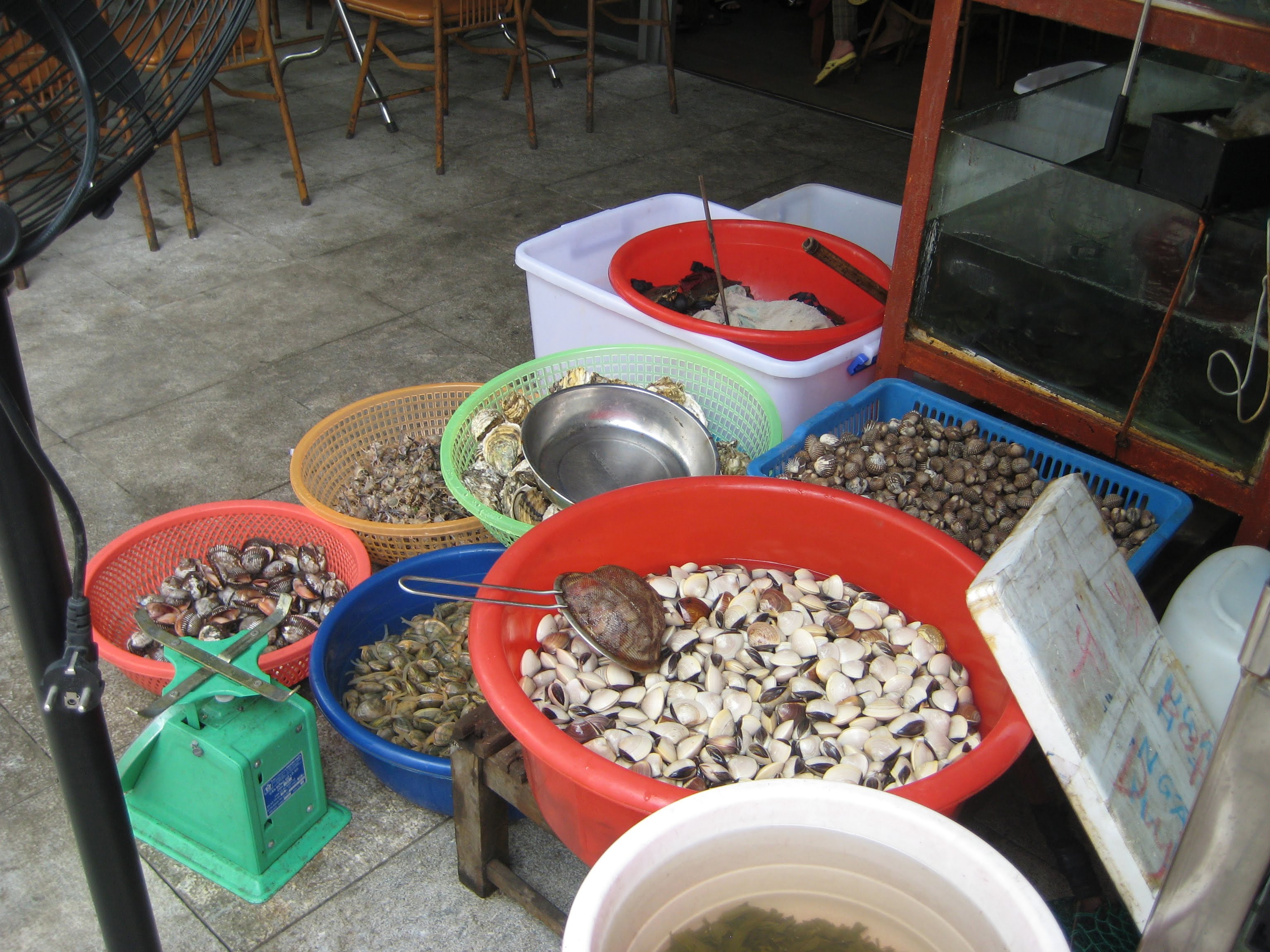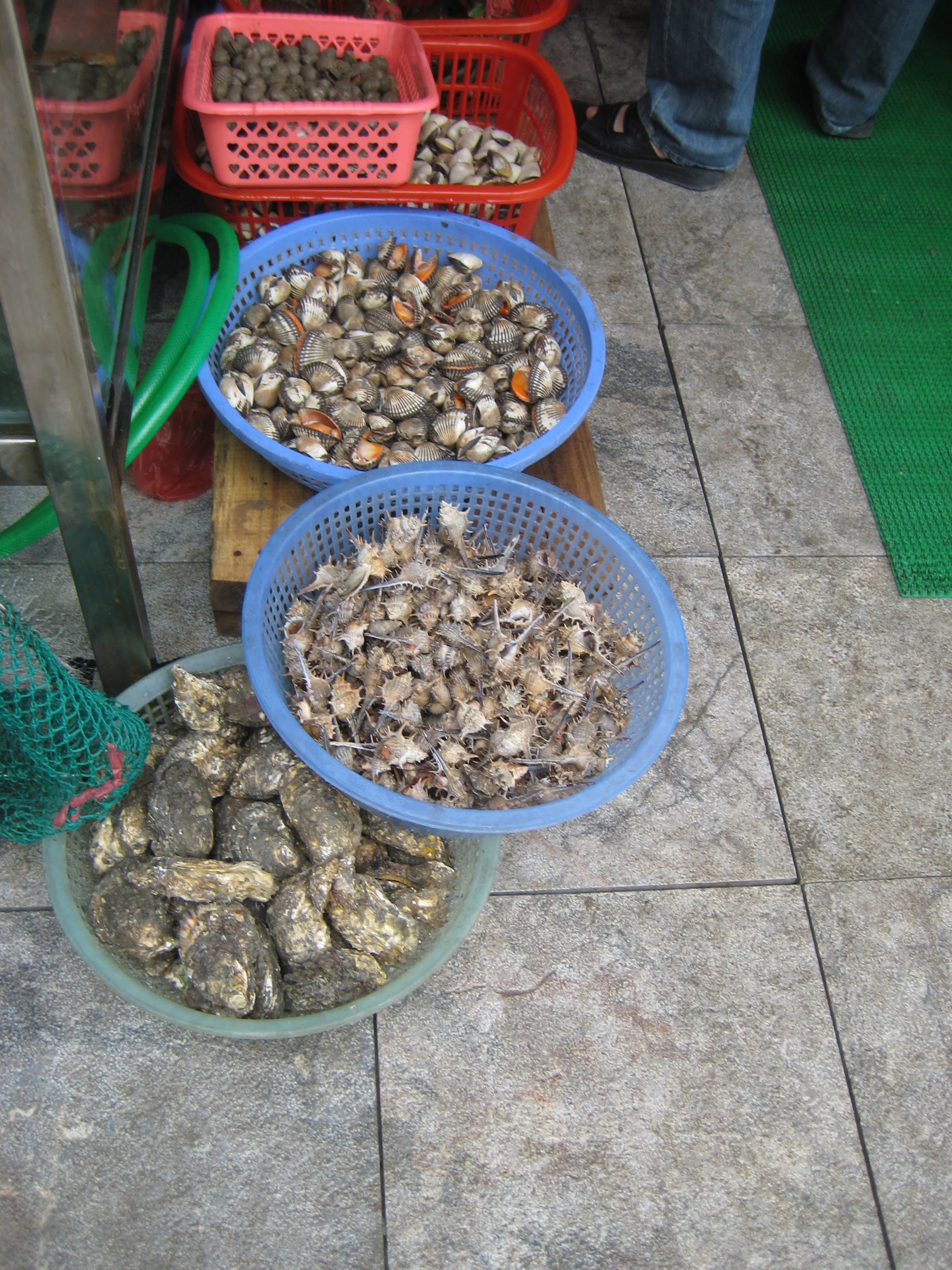 Счёт меня не обрадовал, потому что я заранее не выяснил, сколько что стоит. Ценников, конечно, нет, поэтому слупили с нас как с белых, наверняка в два раза больше, чем надо. Что-то в районе 20$ заплатил. Но не жалею - я раньше ни краба, ни штук на фото ниже не ел, а они были вкусные.