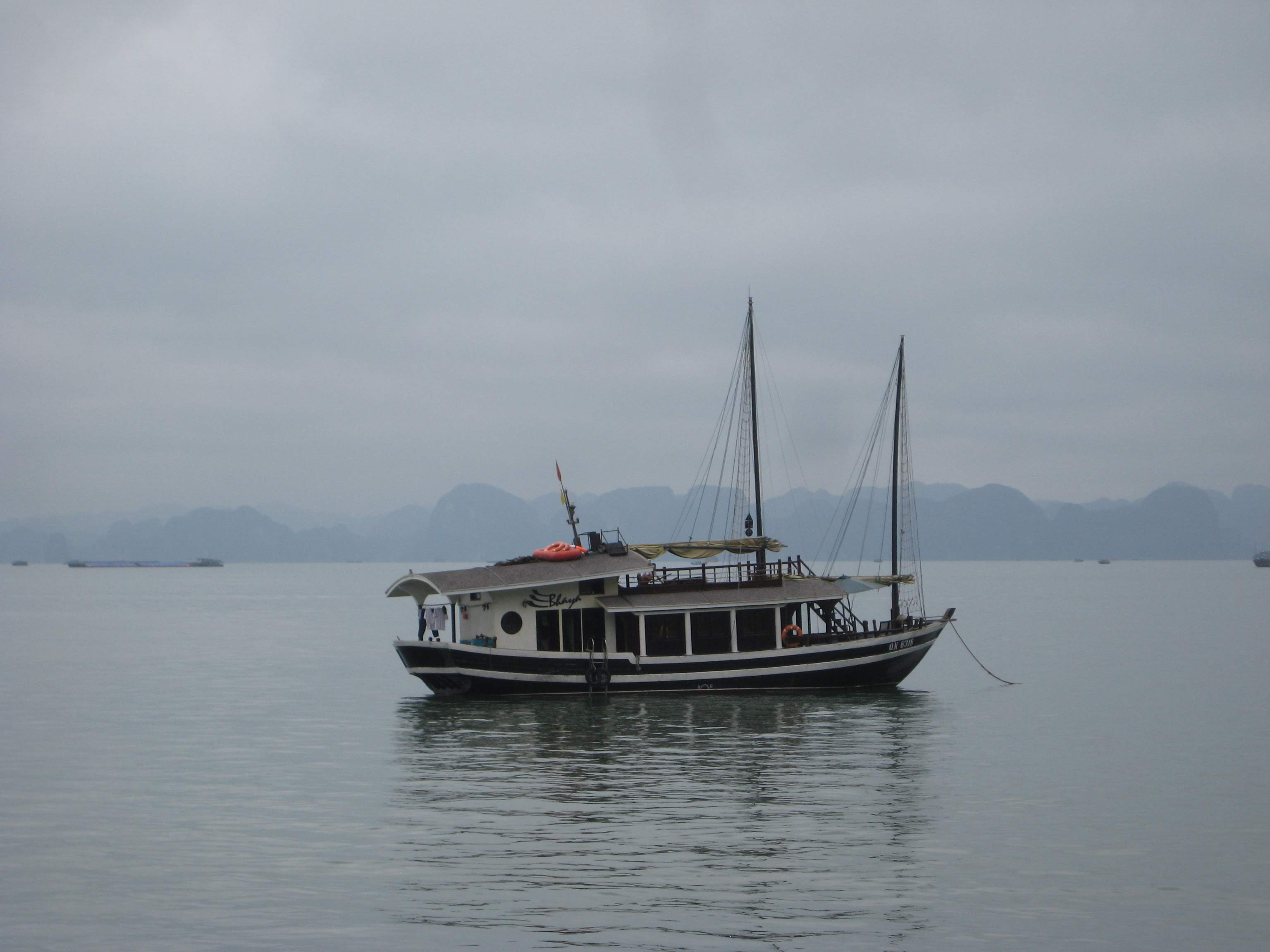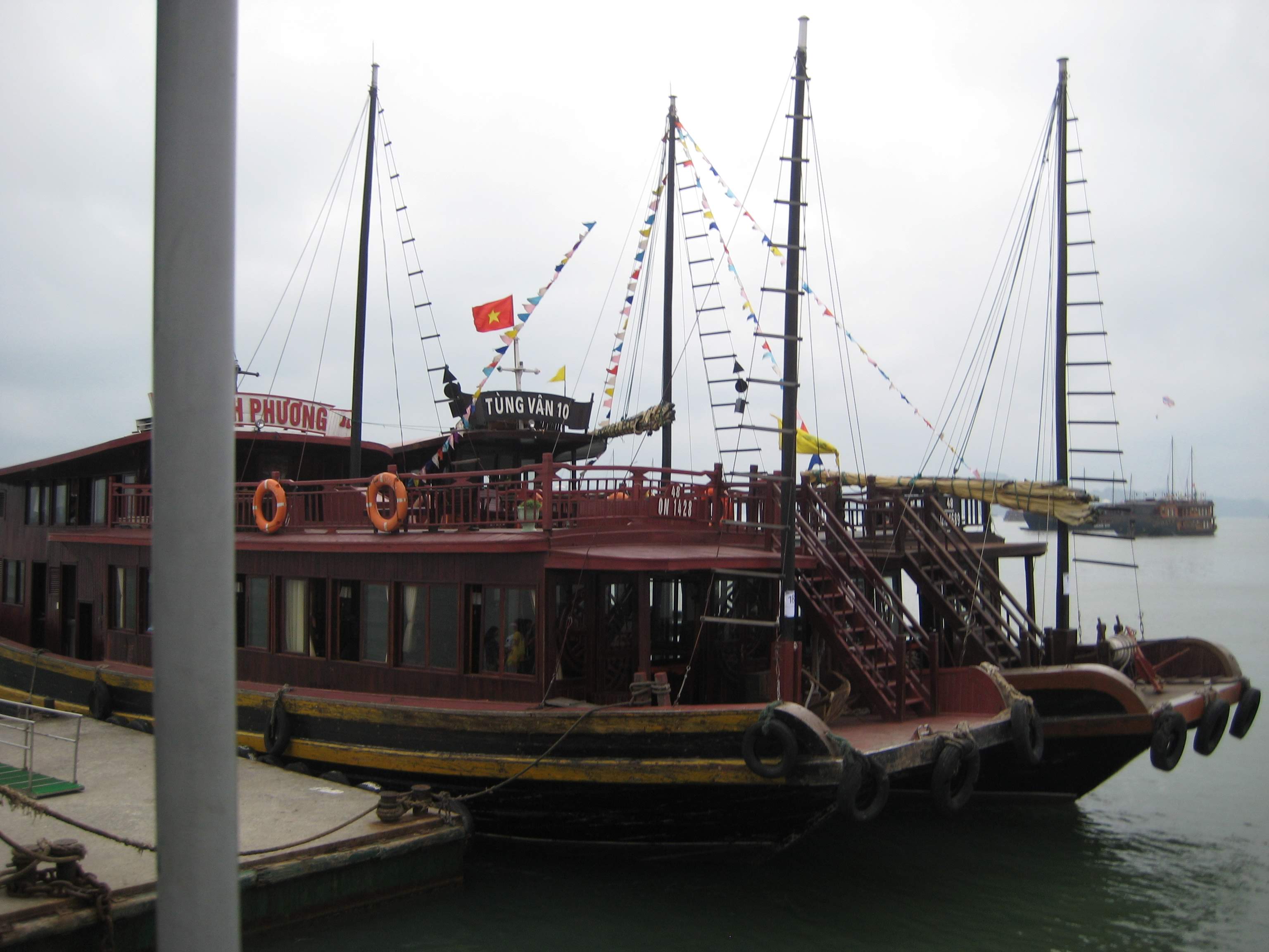 Девушка айтишница и умничка, симпатичная и приятная в общении, работает и учится в ВУЗе, знает английский и японский. И на сиденье спереди сидел её парень, у меня тоже есть кому меня поцеловать дома, так что пришлось нам только поговорить, хехе. Из того, что помню: школьникам во Вьетнаме можно не ходить в школу по усмотрению родителей, если температура падает до +-5 или +7. В Латвии это по-моему минус 20 или или минус 25, в зависимости от класса. Ещё Ню вспоминала японские слова вместо английских. Знакомое ощущение, трёхязычные жители Латвии ? Ещё Ню сказала, что была на островах Халонга (см. далее) с японским коллегой, на трёхчасовой прогулке. Ещё девушка сказала, что хоть у неё дома и живёт пёсик, но собаки всё равно вкусные. Кто бы сомневался. Про утиные эмбрионы решил не спрашивать.