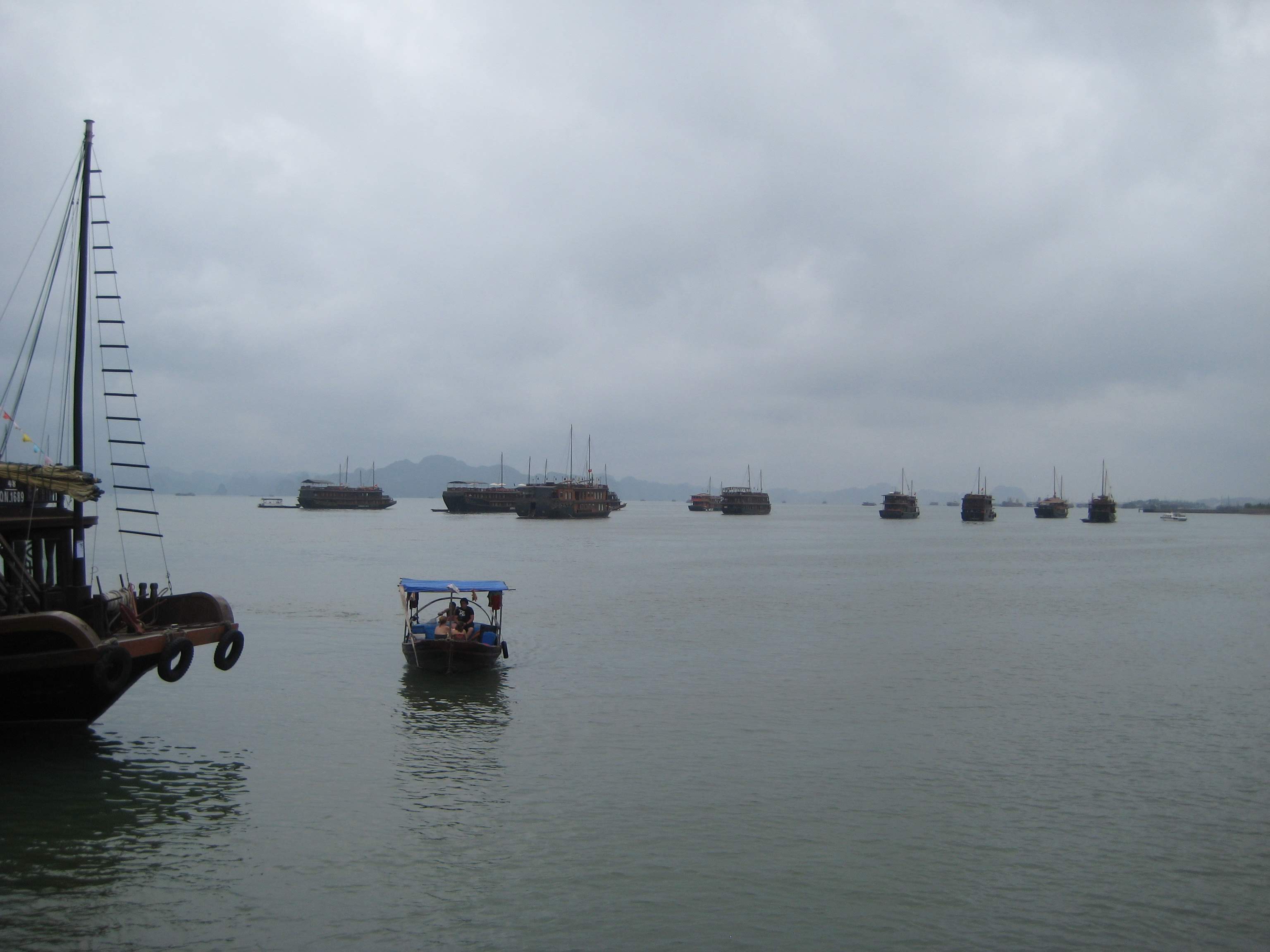 Высадили нас как-то странно, прямо на шоссе, но это не помешало нам пешочком добраться до центра Халонга. Мотобайкеры хотели содрать аж доллар за доброс, причём что идти там было километра 2. Атмосфера в Халонге очень курортная - но после нескончаемых деревень и села смена атмосферы вполне приятна. Теперь я уже не могу говорить, что нигде не был - потому что выходит так, что уже много где был, но всё равно радуюсь тому, чего ещё не видел. Из чисто курортных приморских городов я видел только Юрмалу и Сопот, больше так сразу на ум ничего не приходит.