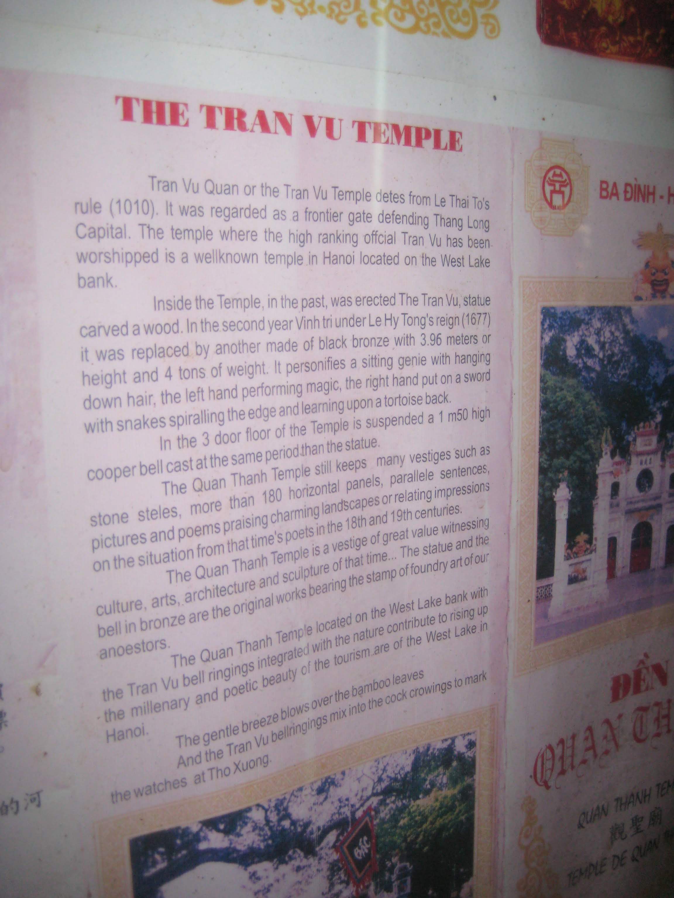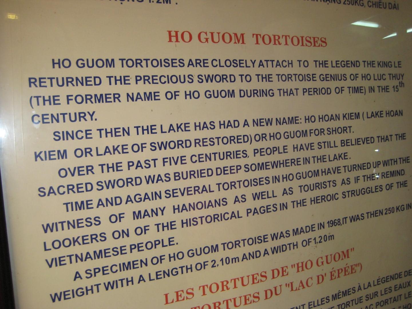 В Ханое очень мало небоскрёбов, и очень много озёр, что для мегаполиса странно. Но приятно. По легенде, император Ле вернул волшебный меч золотому черепаховому богу, и с тех пор озеро называется Озером Возвращённого Меча. Последний, говорят, так в озере и лежит. Насчёт меча не знаю, но черепахи там вроде живут, хоть и не много.